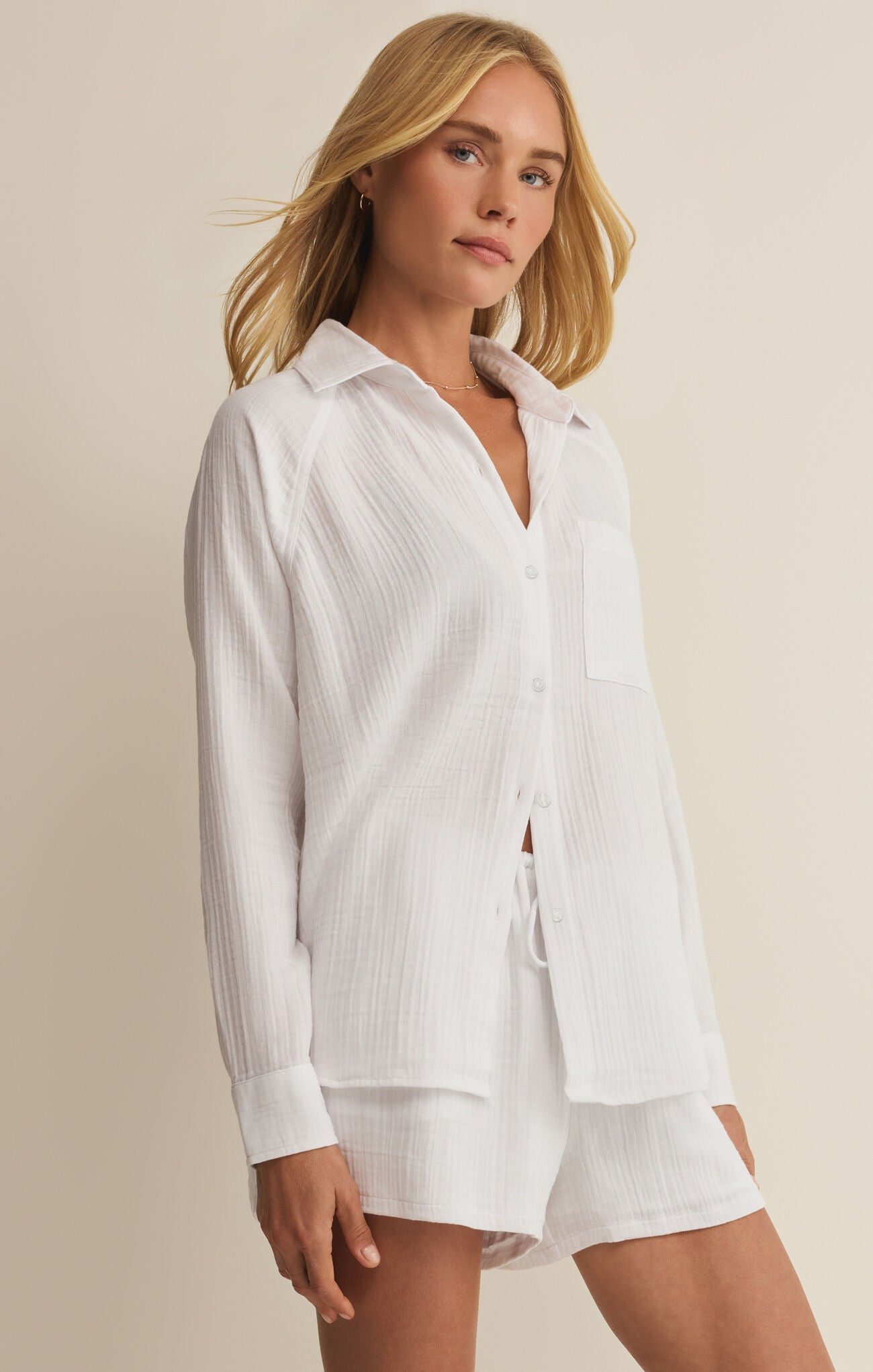 Button Down Top- Regular fit Airy Textured Cotton: 100% Cotton Collared Long sleeve Button front Chest pocket Lightweight Heavy soft...